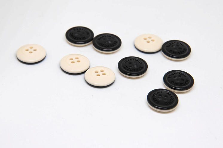 Пуговица пластик 4 прокола d-15мм черно-молочная Massimo Rebecchi - цена 30 ₽ У нас самые доступные цены на в Москве, доставка по всей России - интернет магазин тканей Тессутидея. Артикул товара для заказа - F-4594. Страна производства ткани – Италия. Ширина этого материала - . Состав - Пластик. Наличие остатков на складе - 15