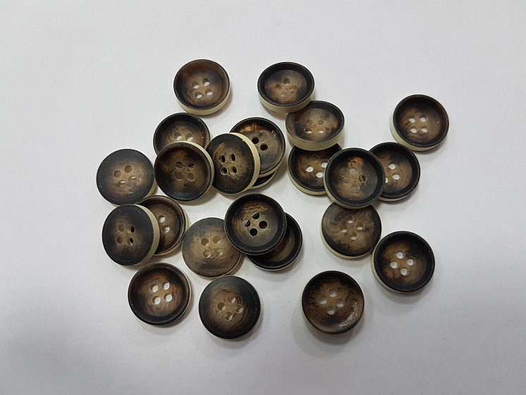 Пуговица пластик 4 прокола d-15мм коричневая с бежевым ободком Арт. F-5111