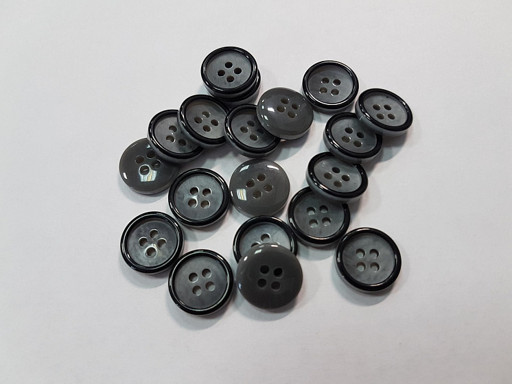 Пуговица пластик 4 прокола d-15мм серо-черная Арт. F-5368