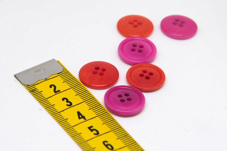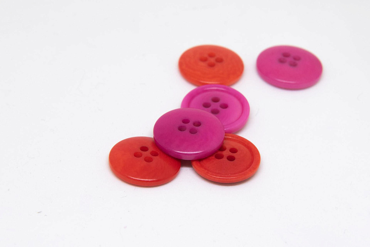 Пуговица пластик 4 прокола d-16мм розовая, оранжевая Арт. F-4614