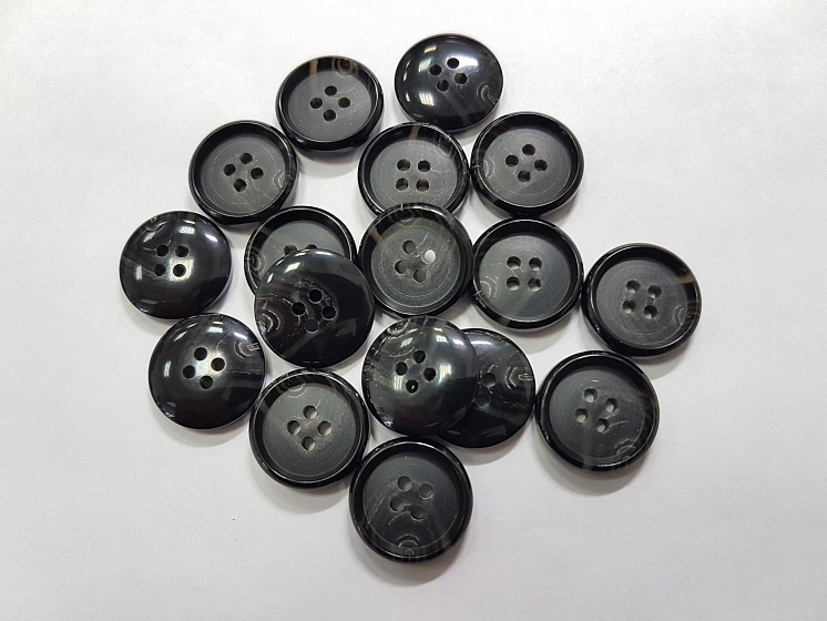Пуговица пластик 4 прокола d-18мм черная меланжевая Арт. F-5211