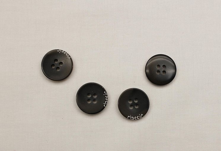 Пуговица пластик 4 прокола d-18мм черная с надписью Арт. F-6665