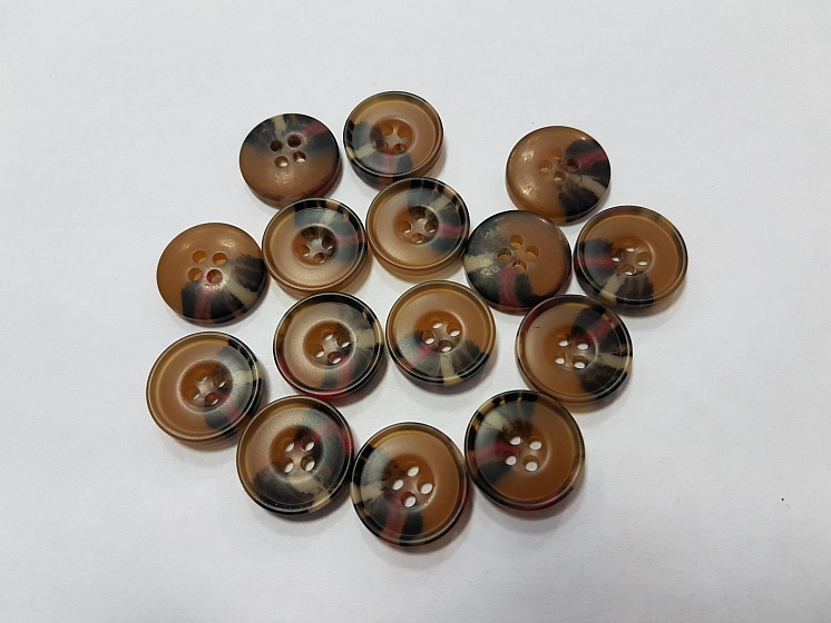 Пуговица пластик 4 прокола d-19мм светло-коричневая с красно-черными прожилками - цена 140 ₽ У нас самые доступные цены на в Москве, доставка по всей России - интернет магазин тканей Тессутидея. Артикул товара для заказа - F-4897. Страна производства ткани – Италия. Ширина этого материала - . Состав - пластик. Наличие остатков на складе - 4