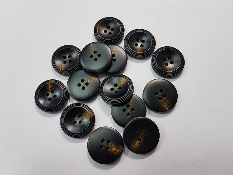 Пуговица пластик 4 прокола d-20мм черная с желтыми вкраплениями Арт. F-5387