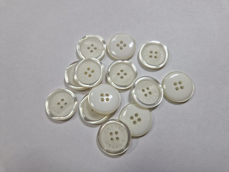 Пуговица пластик 4 прокола d-20мм молочная с перламутровым ободком Арт. F-5961