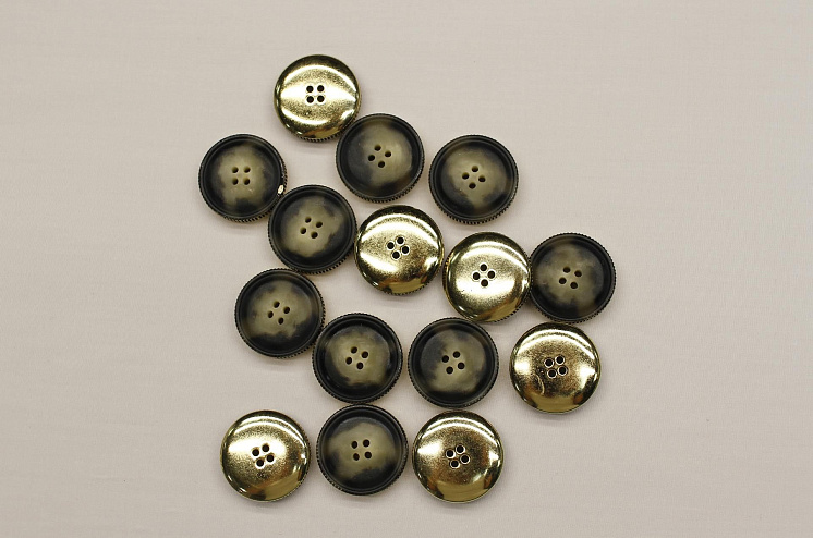 Пуговица пластик 4 прокола d-26мм серо-молочная с золотым бортиком - цена 120 ₽ У нас самые доступные цены на в Москве, доставка по всей России - интернет магазин тканей Тессутидея. Артикул товара для заказа - F-6877. Страна производства ткани – Италия. Ширина этого материала - . Состав - пластик. Наличие остатков на складе - 242