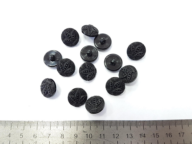 Пуговица пластик на ножке d-14мм черная фактурная со стразами - цена 200 ₽ У нас самые доступные цены на в Москве, доставка по всей России - интернет магазин тканей Тессутидея. Артикул товара для заказа - F-3569. Страна производства ткани – Италия. Ширина этого материала - . Состав - Пластик. Наличие остатков на складе - 14