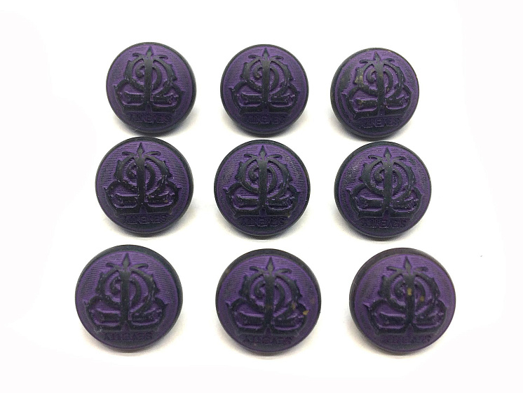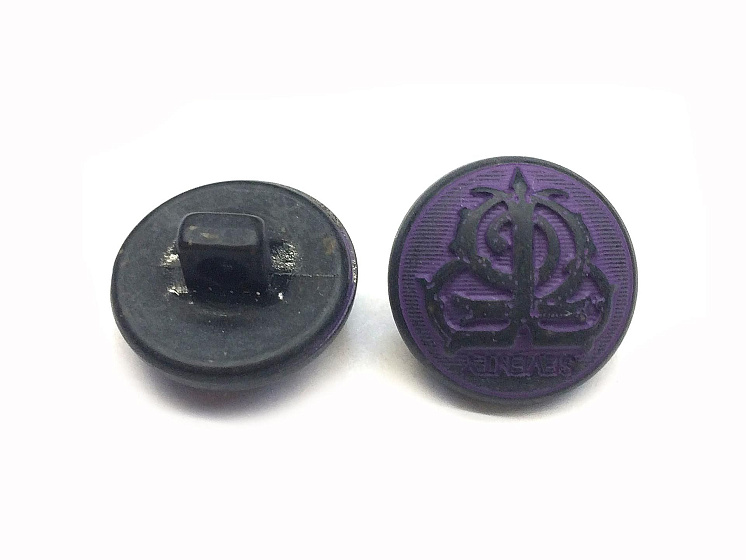 Пуговица пластик на ножке d-14мм фиолетовая с геральдикой Арт. F-3315