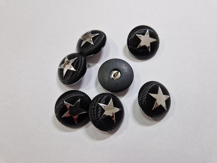 Пуговица пластик на ножке d-25мм черная рифленая со звездой Арт. F-5974