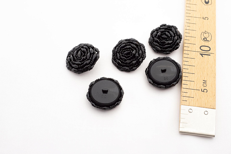 Пуговица пластик на ножке d-38мм черная расшитая стеклярусом Арт. F-4392