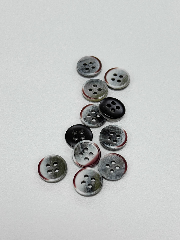 Пуговица пластик под рог 4 прокола d-11мм серо-зеленая с бордовым - цена 25 ₽ У нас самые доступные цены на Пластик в Москве, доставка по всей России - интернет магазин тканей Тессутидея. Артикул товара для заказа - F-7127. Страна производства ткани – Италия. Ширина этого материала - . Состав - Пластик. Наличие остатков на складе - 108