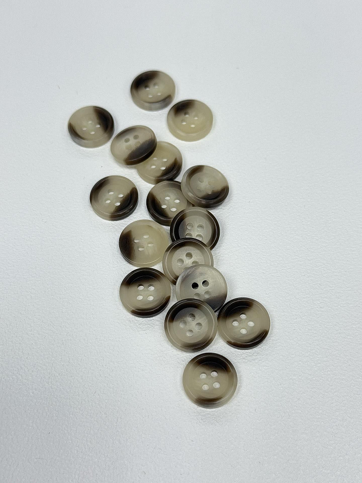 Пуговица пластик под рог 4 прокола d-15мм бежево-коричневая Арт. F-7167
