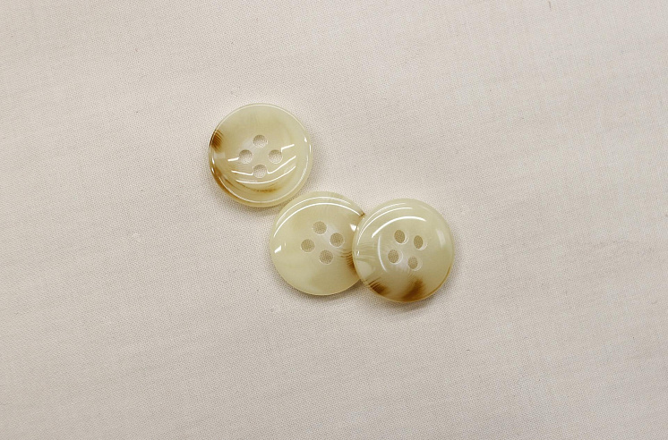 Пуговица пластик под рог 4 прокола d-15мм молочная с коричневыми вкраплениями - цена 30 ₽ У нас самые доступные цены на в Москве, доставка по всей России - интернет магазин тканей Тессутидея. Артикул товара для заказа - F-6749. Страна производства ткани – Италия. Ширина этого материала - . Состав - Пластик. Наличие остатков на складе - 6