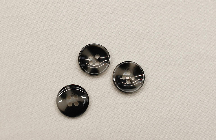 Пуговица пластик под рог 4 прокола d-15мм серо-черная Арт. F-6754