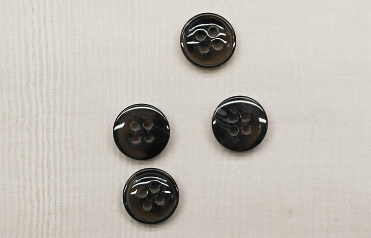 Пуговица пластик под рог 4 прокола d-15мм серо-черная - цена 30 ₽ У нас самые доступные цены на в Москве, доставка по всей России - интернет магазин тканей Тессутидея. Артикул товара для заказа - F-6814. Страна производства ткани – Италия. Ширина этого материала - . Состав - Пластик. Наличие остатков на складе - 32