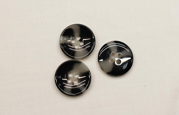 Пуговица пластик под рог 4 прокола d-18мм серо-черная Арт. F-6753