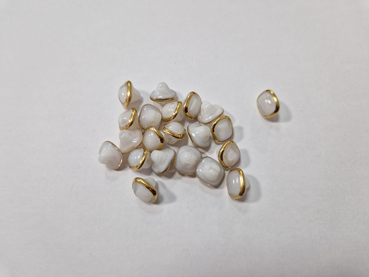 Пуговица прямоугольная на ножке d-10мм белая с золотым ободком Арт. F-5865