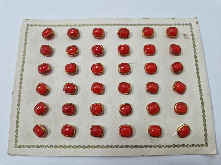 Пуговица прямоугольная на ножке d-10мм красная с золотым ободком - цена 70 ₽ У нас самые доступные цены на Пластик в Москве, доставка по всей России - интернет магазин тканей Тессутидея. Артикул товара для заказа - F-5867. Страна производства ткани – Италия. Ширина этого материала - . Состав - . Наличие остатков на складе - 56