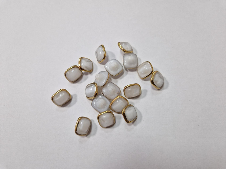 Пуговица прямоугольная на ножке d-13мм белая с золотым ободком - цена 120 ₽ У нас самые доступные цены на в Москве, доставка по всей России - интернет магазин тканей Тессутидея. Артикул товара для заказа - F-5866. Страна производства ткани – Италия. Ширина этого материала - . Состав - . Наличие остатков на складе - 50