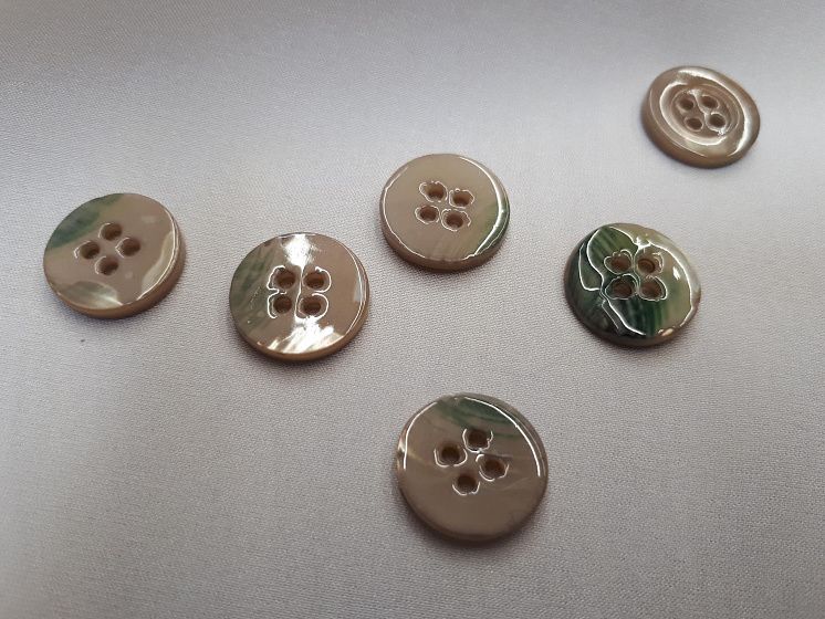 Пуговица ракушка 4 прокола d-14мм бежево-зеленая с ободком - цена 25 ₽ У нас самые доступные цены на Пуговицы и кнопки в Москве, доставка по всей России - интернет магазин тканей Тессутидея. Артикул товара для заказа - F-3935. Страна производства ткани – Италия. Ширина этого материала - . Состав - Ракушка. Наличие остатков на складе - 170