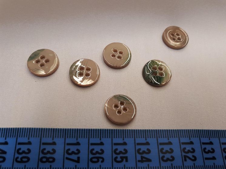 Пуговица ракушка 4 прокола d-14мм бежево-зеленая с ободком Арт. F-3935