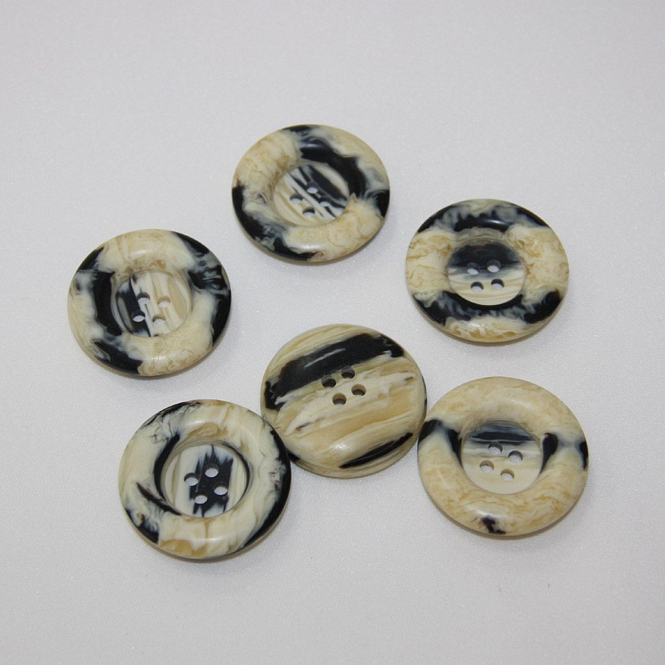 Пуговица рог 4 прокола черно-бежевая d-30mm Арт. F-2536