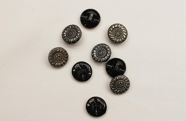 Пуговица стеклянная винтажная на ножке d-13мм черно-серебрянная - цена 300 ₽ У нас самые доступные цены на в Москве, доставка по всей России - интернет магазин тканей Тессутидея. Артикул товара для заказа - F-6598. Страна производства ткани – Италия. Ширина этого материала - . Состав - Стекло. Наличие остатков на складе - 30