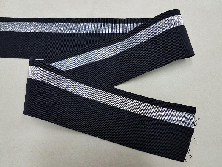 Резинка с люрексом черная с серой полосой, синяя с красной полосой в сложении ш-3см в стиле Gucci - цена 700 ₽ У нас самые доступные цены на Синтетические волокна в Москве, доставка по всей России - интернет магазин тканей Тессутидея. Артикул товара для заказа - F-4976. Страна производства ткани – Италия. Ширина этого материала - 3. Состав - Полиамид 100%. Наличие остатков на складе - 1 м