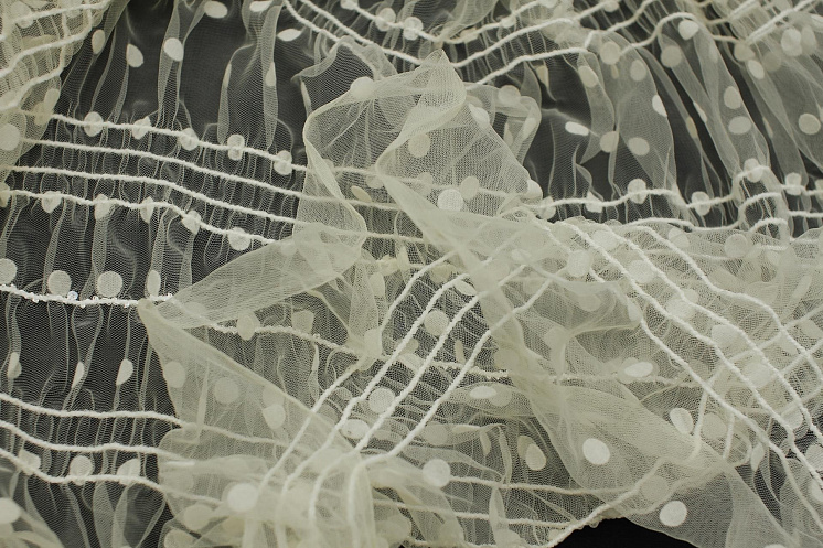 Сетка плательная фантазийная (о) горох на молочном - цена 2 100 ₽ У нас самые доступные цены на Сетки и фатин в Москве, доставка по всей России - интернет магазин тканей Тессутидея. Артикул товара для заказа - 03-6908. Страна производства ткани – Италия. Ширина этого материала - 170. Состав - Полиамид 100%. Наличие остатков на складе - 2.4 м
