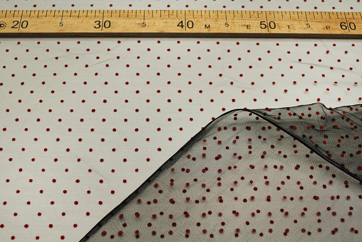 Сетка плательная (н) красный горох на черном Арт. 03-7396