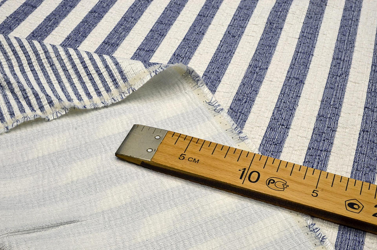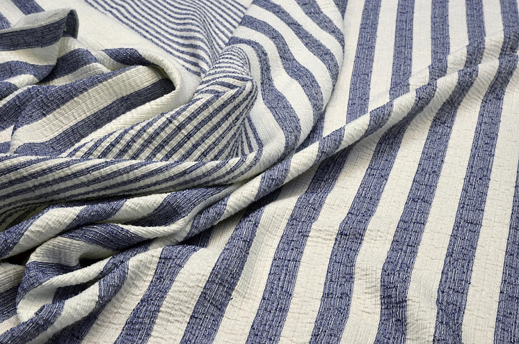 Шанель с люрексом купон (0,9м) (н) сине-белая полоска - цена 2 100 ₽ У нас самые доступные цены на Шанель в Москве, доставка по всей России - интернет магазин тканей Тессутидея. Артикул товара для заказа - 03-5462. Страна производства ткани – Италия. Ширина этого материала - 125. Состав - Хлопок 30% полиамид 50% люрекс 20%. Наличие остатков на складе - 1.45 м