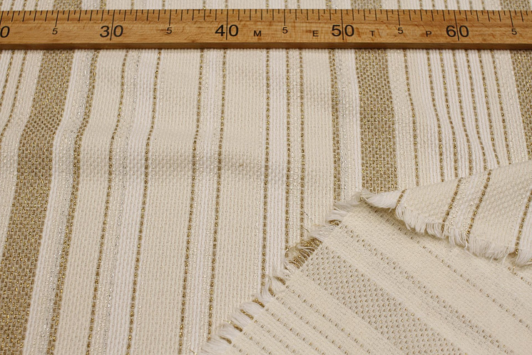 Шанель с люрексом (н) бежево-молочная полоска - цена 3 100 ₽ У нас самые доступные цены на Шанель в Москве, доставка по всей России - интернет магазин тканей Тессутидея. Артикул товара для заказа - 01-7598. Страна производства ткани – Италия. Ширина этого материала - 145. Состав - Лен 40% хлопок 50% люрекс 10%. Наличие остатков на складе - 4.3 м