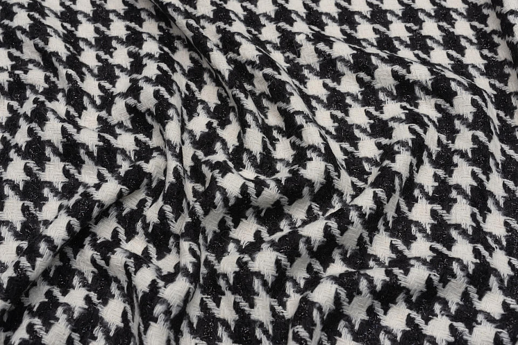 Шанель с люрексом (н) черно-белая гусиная лапка - цена 4 800 ₽ У нас самые доступные цены на Шанель в Москве, доставка по всей России - интернет магазин тканей Тессутидея. Артикул товара для заказа - 03-6807. Страна производства ткани – Италия. Ширина этого материала - 150. Состав - Хлопок 20% акрил 45% п/а 15% люр 20%. Наличие остатков на складе - 7.4 м