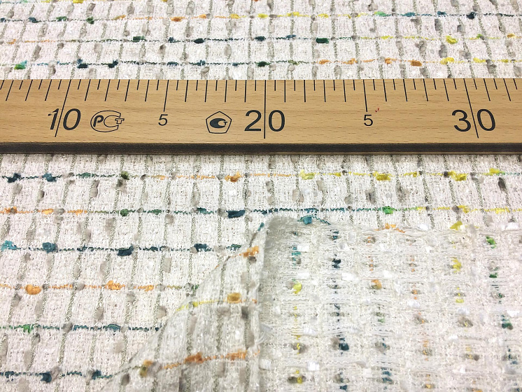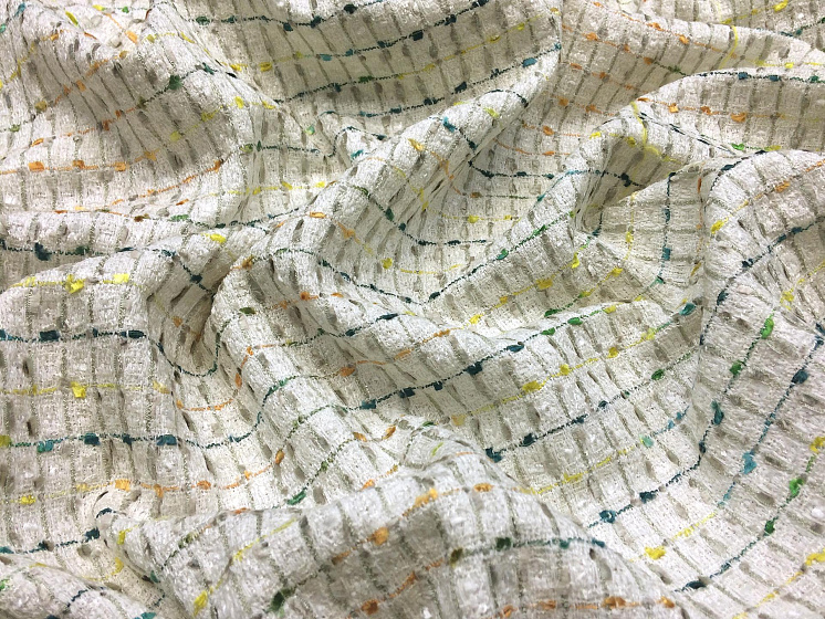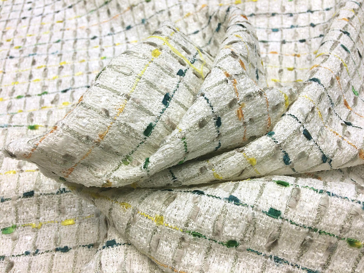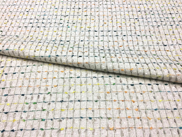 Шанель с люрексом (н) цветные вкрапления на серо-белой клетке - цена 5 800 ₽ У нас самые доступные цены на Шанель в Москве, доставка по всей России - интернет магазин тканей Тессутидея. Артикул товара для заказа - 03-4962. Страна производства ткани – Италия. Ширина этого материала - 130. Состав - Хлопок 35% вискоза 55% люрекс 10%. Наличие остатков на складе - 1.4 м