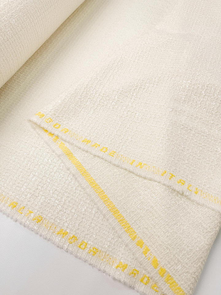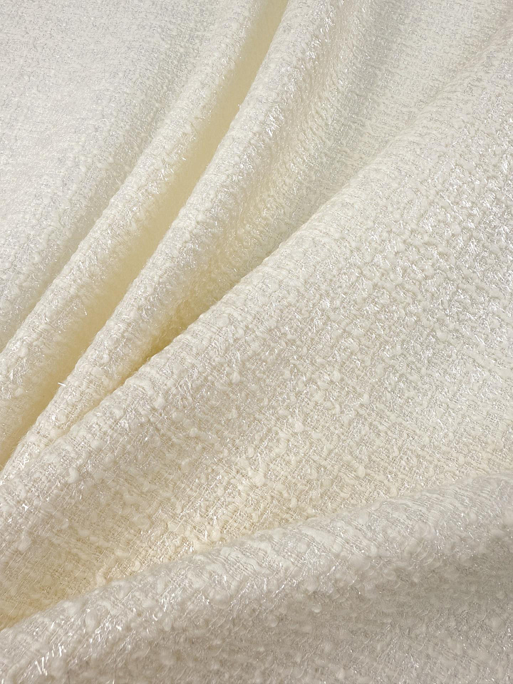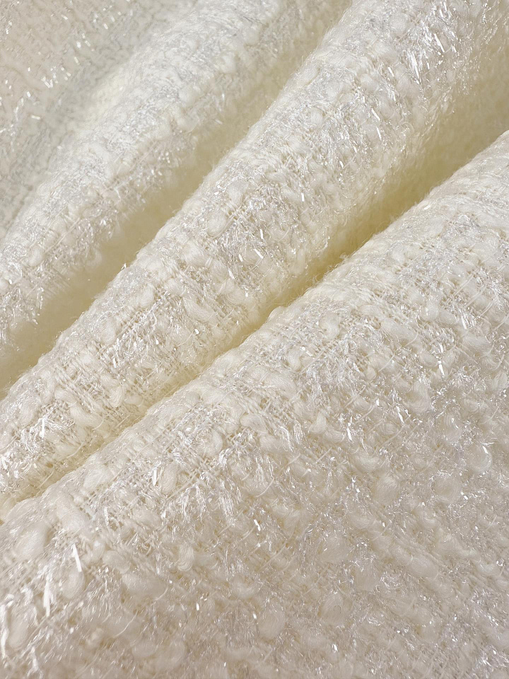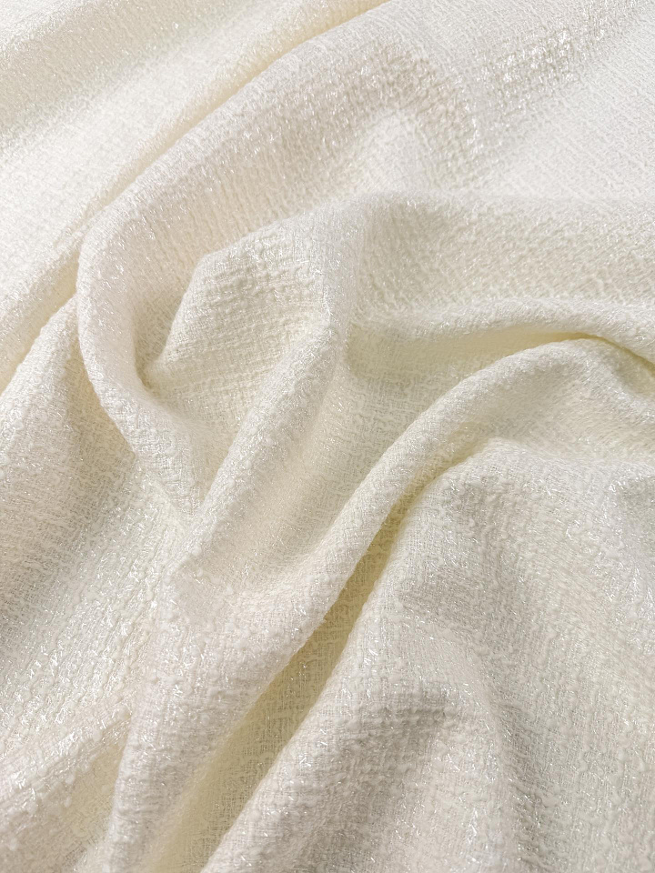 Шанель с люрексом (о) белая - цена 7 800 ₽ У нас самые доступные цены на в Москве, доставка по всей России - интернет магазин тканей Тессутидея. Артикул товара для заказа - 03-7538. Страна производства ткани – Италия. Ширина этого материала - 150. Состав - Шерсть 45% шелк 15% полиамид 15% люрекс. Наличие остатков на складе - 10.7 м