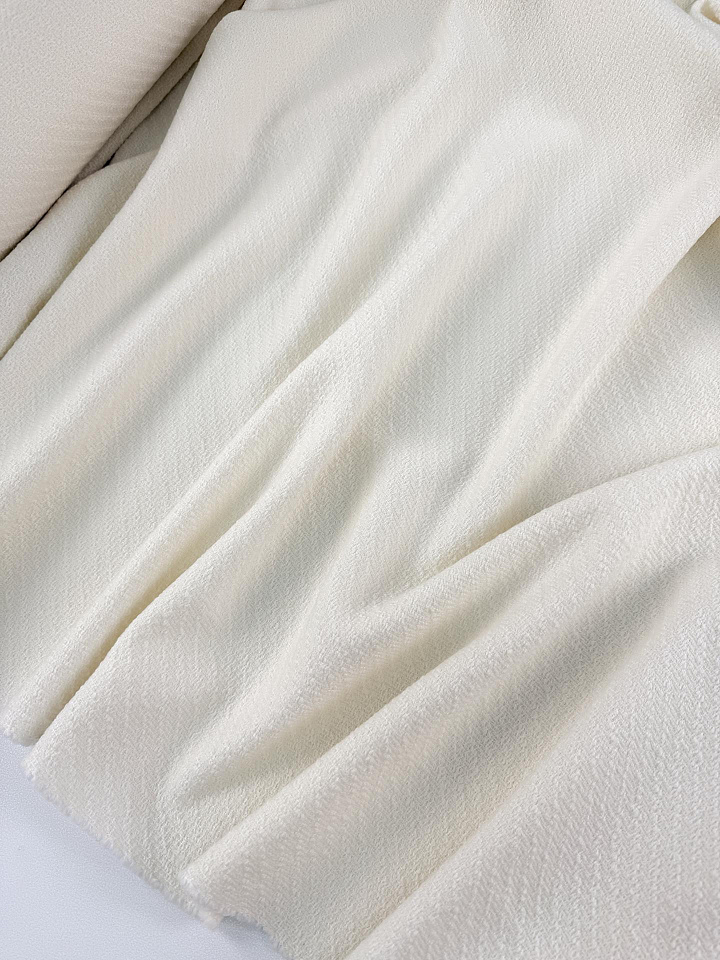 Шанель шерсть с вискозой (о) айвори - цена 4 500 ₽ У нас самые доступные цены на в Москве, доставка по всей России - интернет магазин тканей Тессутидея. Артикул товара для заказа - 05-5373. Страна производства ткани – Италия. Ширина этого материала - 145. Состав - Шерсть 85% вискоза 15%. Наличие остатков на складе - 17.4 м