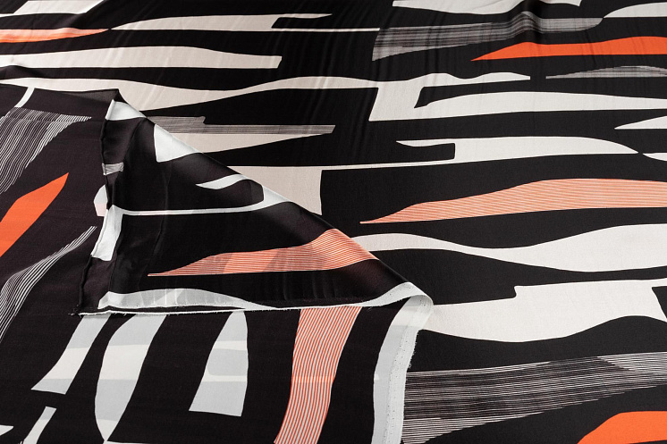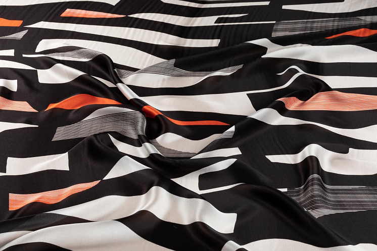 Шармюз (н) черно-бело-оранжевая геометрическая абстракция - цена 3 400 ₽ У нас самые доступные цены на Шелк набивной в Москве, доставка по всей России - интернет магазин тканей Тессутидея. Артикул товара для заказа - 10-2718. Страна производства ткани – Италия. Ширина этого материала - 140. Состав - Шелк 100%. Наличие остатков на складе - 6 м