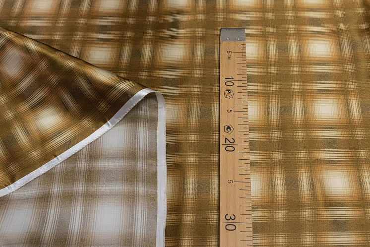 Шелк атлас (н) бежево-коричневая стилизованная клетка Арт. 10-2596