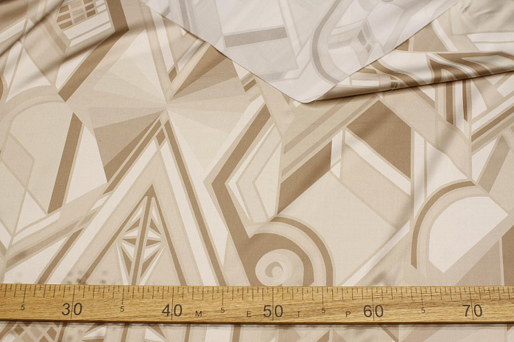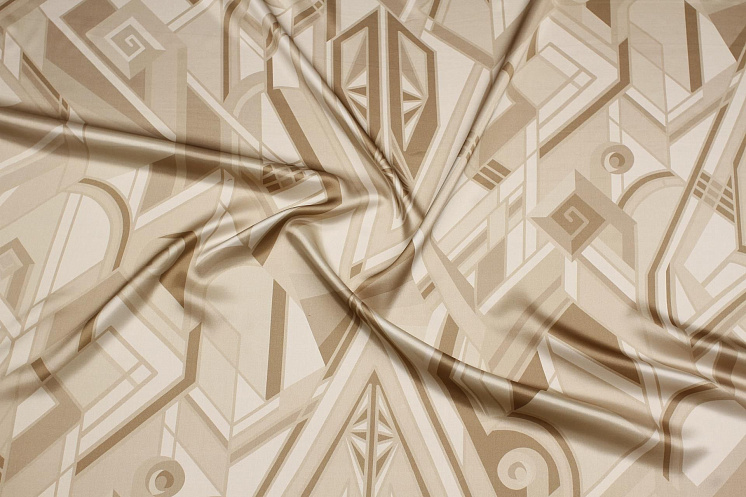 Шелк атлас (н) бежево-коричневый геометрический рисунок Арт. 10-4059