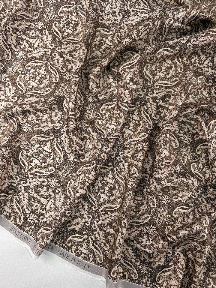 Шелк атлас (н) бежево-коричневый рисунок - цена 7 200 ₽ У нас самые доступные цены на в Москве, доставка по всей России - интернет магазин тканей Тессутидея. Артикул товара для заказа - 10-5115. Страна производства ткани – Италия. Ширина этого материала - 140. Состав - Шелк 100%. Наличие остатков на складе - 6.7 м