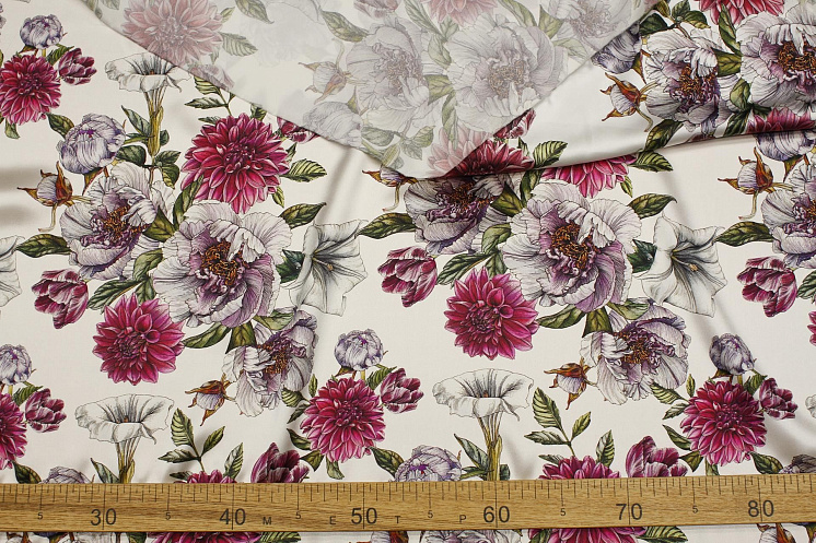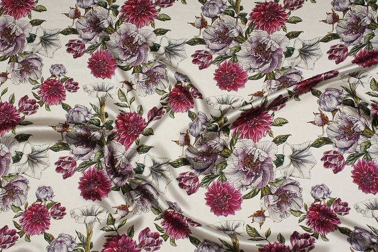 Шелк атлас (н) крупный цветочный рисунок на белом - цена 6 400 ₽ У нас самые доступные цены на Шелк набивной в Москве, доставка по всей России - интернет магазин тканей Тессутидея. Артикул товара для заказа - 10-3797. Страна производства ткани – Италия. Ширина этого материала - 140. Состав - Шелк 100%. Наличие остатков на складе - 3.5 м