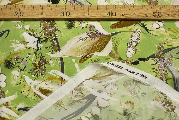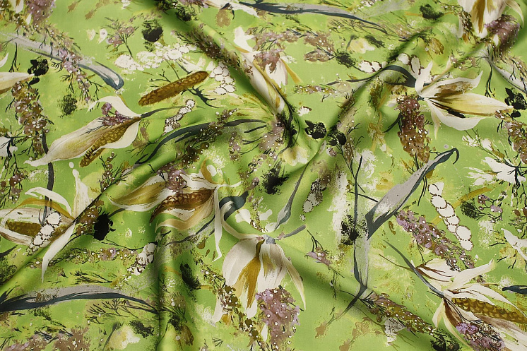 Шелк атлас (н) растительная абстракция на салатовом - цена 6 400 ₽ У нас самые доступные цены на Шелк набивной в Москве, доставка по всей России - интернет магазин тканей Тессутидея. Артикул товара для заказа - 10-4469. Страна производства ткани – Италия. Ширина этого материала - 140. Состав - Шелк 100%. Наличие остатков на складе - 5.9 м