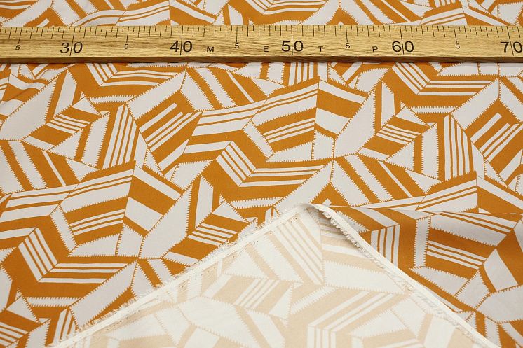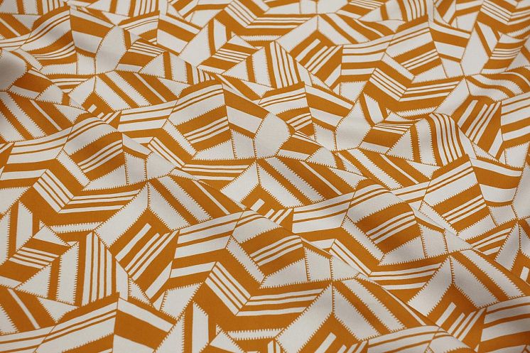 Шелк атлас (н) серо-оранжевый геометрический рисунок Арт. 10-4471