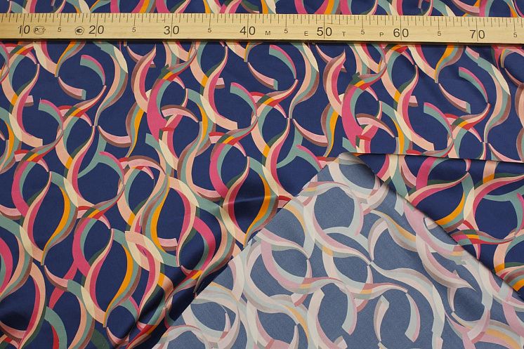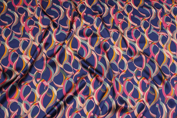 Шелк атлас (н) яркая геометрическая абстракция на темно-синем Арт. 10-3702