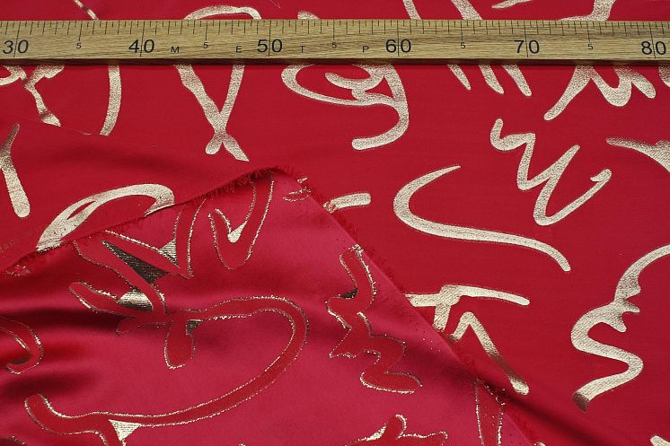 Шелк атлас с люрексом (н) золотой орнамент на брусничном - цена 7 800 ₽ У нас самые доступные цены на Шелк набивной в Москве, доставка по всей России - интернет магазин тканей Тессутидея. Артикул товара для заказа - 10-3783. Страна производства ткани – Италия. Ширина этого материала - 140. Состав - Шелк 85% люрекс 15%. Наличие остатков на складе - 2.9 м