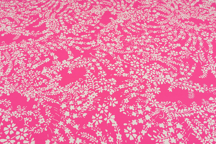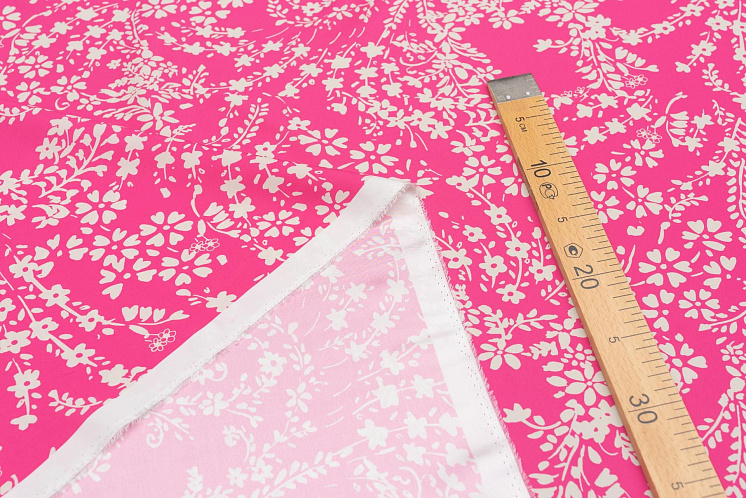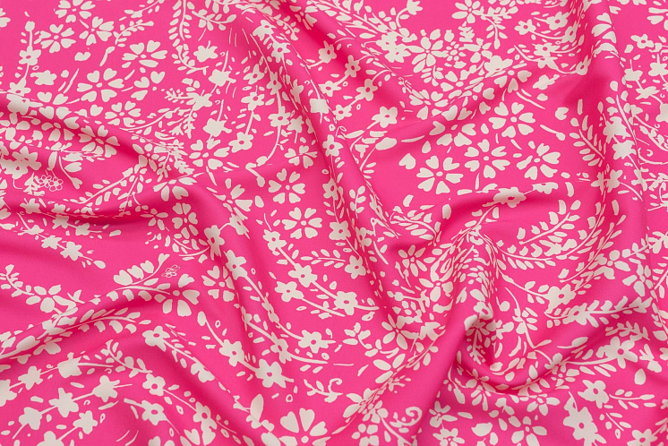 Шелк атлас стрейч (н) белый цветочный рисунок на фуксии Арт. 10-2770