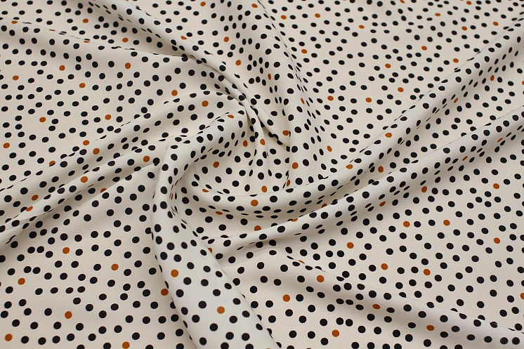 Шелк атлас стрейч (н) черно-терракотовый горох на белом Арт. 10-3735