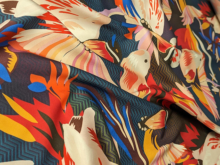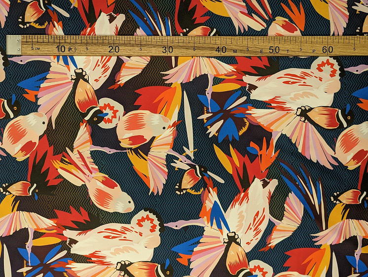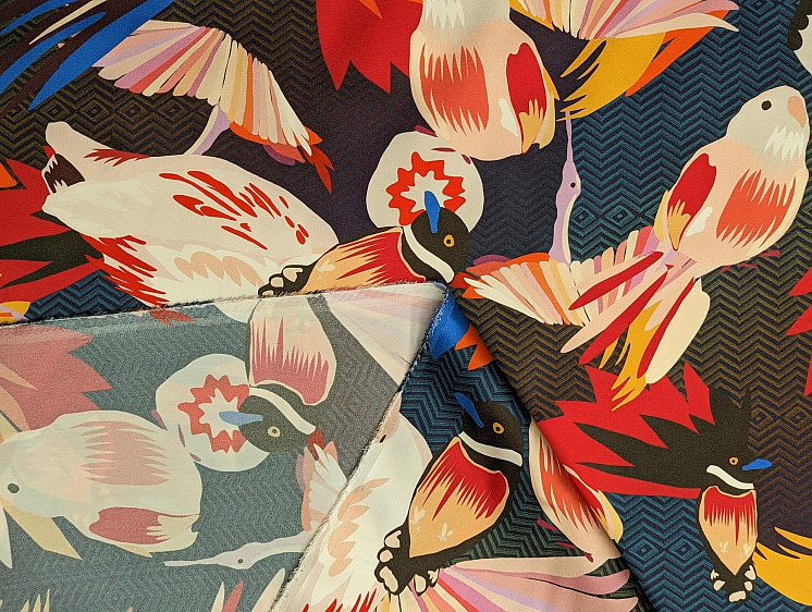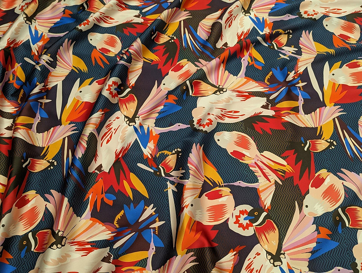 Шелк атлас стрейч (н) птицы на сине-фиолетовом - цена 5 800 ₽ У нас самые доступные цены на Шелк набивной в Москве, доставка по всей России - интернет магазин тканей Тессутидея. Артикул товара для заказа - 10-3054. Страна производства ткани – Италия. Ширина этого материала - 137. Состав - Шелк 96% эластан 4%. Наличие остатков на складе - 1.5 м