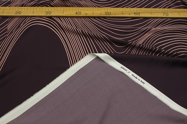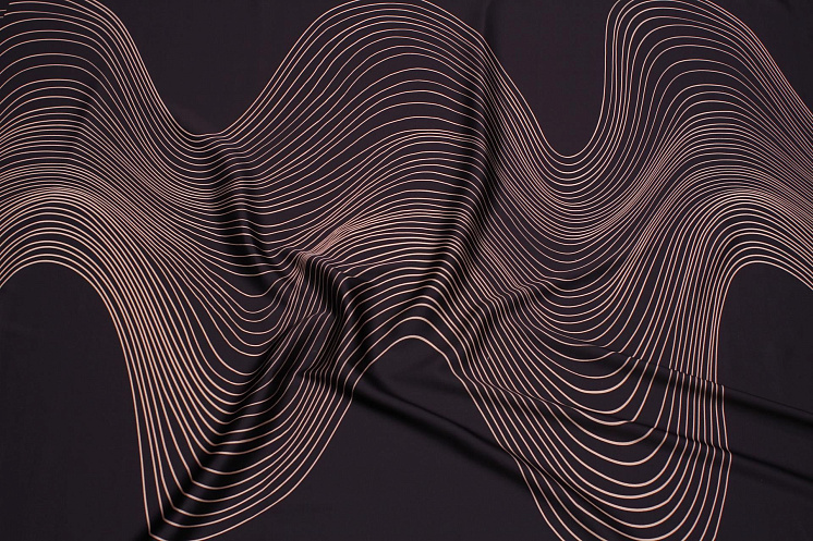 Шелк атлас стрейч (н) розовый волнообразный рисунок на темно-фиолетовом - цена 6 800 ₽ У нас самые доступные цены на Шелк набивной в Москве, доставка по всей России - интернет магазин тканей Тессутидея. Артикул товара для заказа - 10-3734. Страна производства ткани – Италия. Ширина этого материала - 140. Состав - Шелк 96% эластан 4%. Наличие остатков на складе - 2.7 м