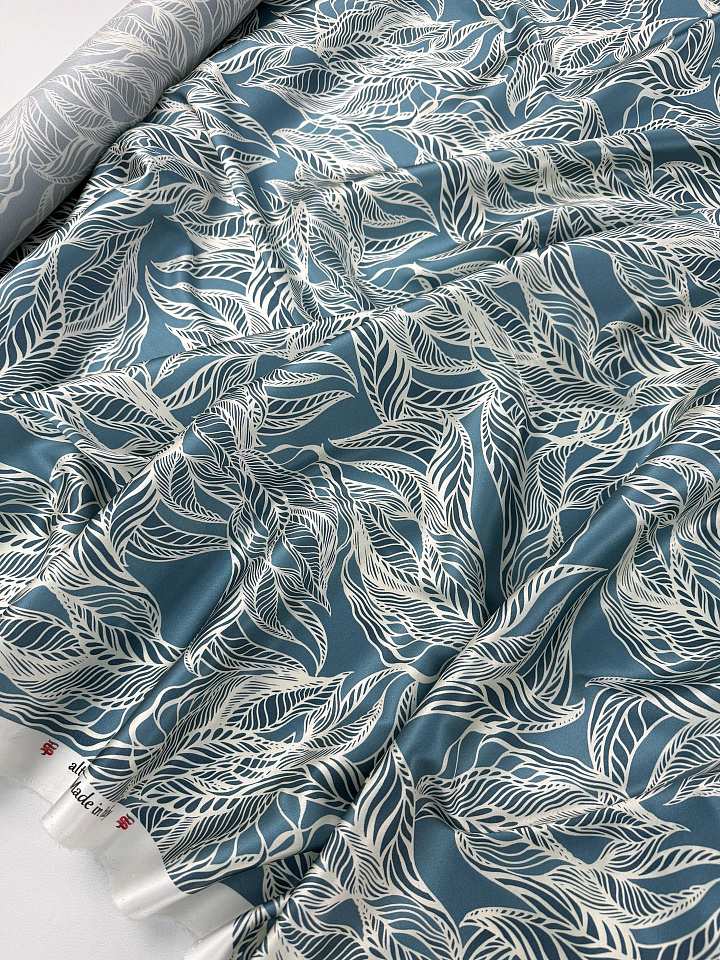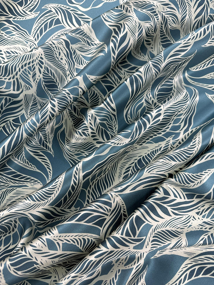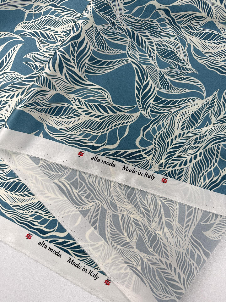 Шелк атлас стрейч (н) серо-синий рисунок на белом - цена 7 200 ₽ У нас самые доступные цены на в Москве, доставка по всей России - интернет магазин тканей Тессутидея. Артикул товара для заказа - 10-5156. Страна производства ткани – Италия. Ширина этого материала - 140. Состав - Шелк 95% эластан 5%. Наличие остатков на складе - 6.6 м